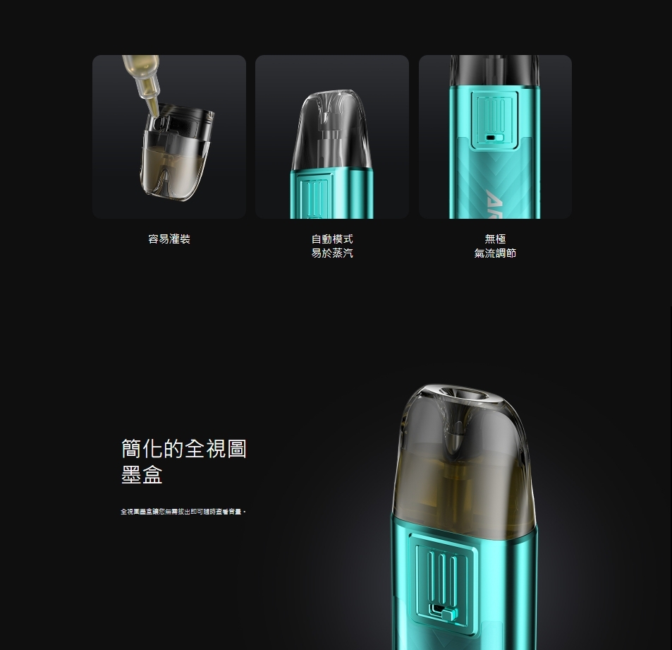 在保留鋅合金和皮革材質的經典優雅設計的同時, 創新了亮麗的新外觀和閃亮的裝飾飾面。 四孔進氣口確保口感順滑,多層防漏結構在ARGUS POD煙彈中有效發揮作用。 同時,其兩個版本墨盒完全相容於ARGUS G、ARGUS POD、ARGUS P1 和ARGUS Z。