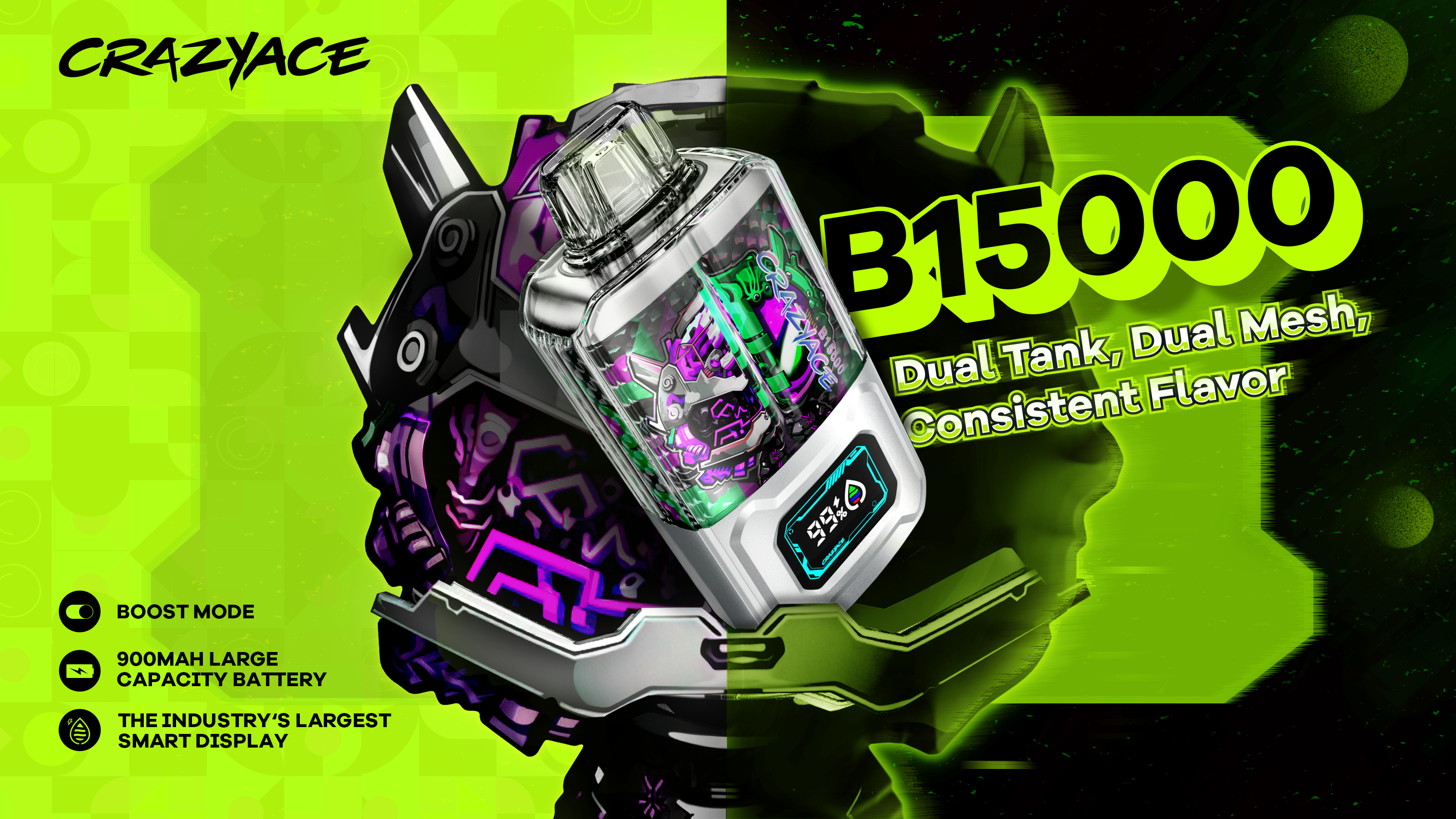 立即選擇 CRAZYACE B15000,享受長效吸煙的極致樂趣。無論是日常使用還是長途旅行,它都是您的理想選擇!
