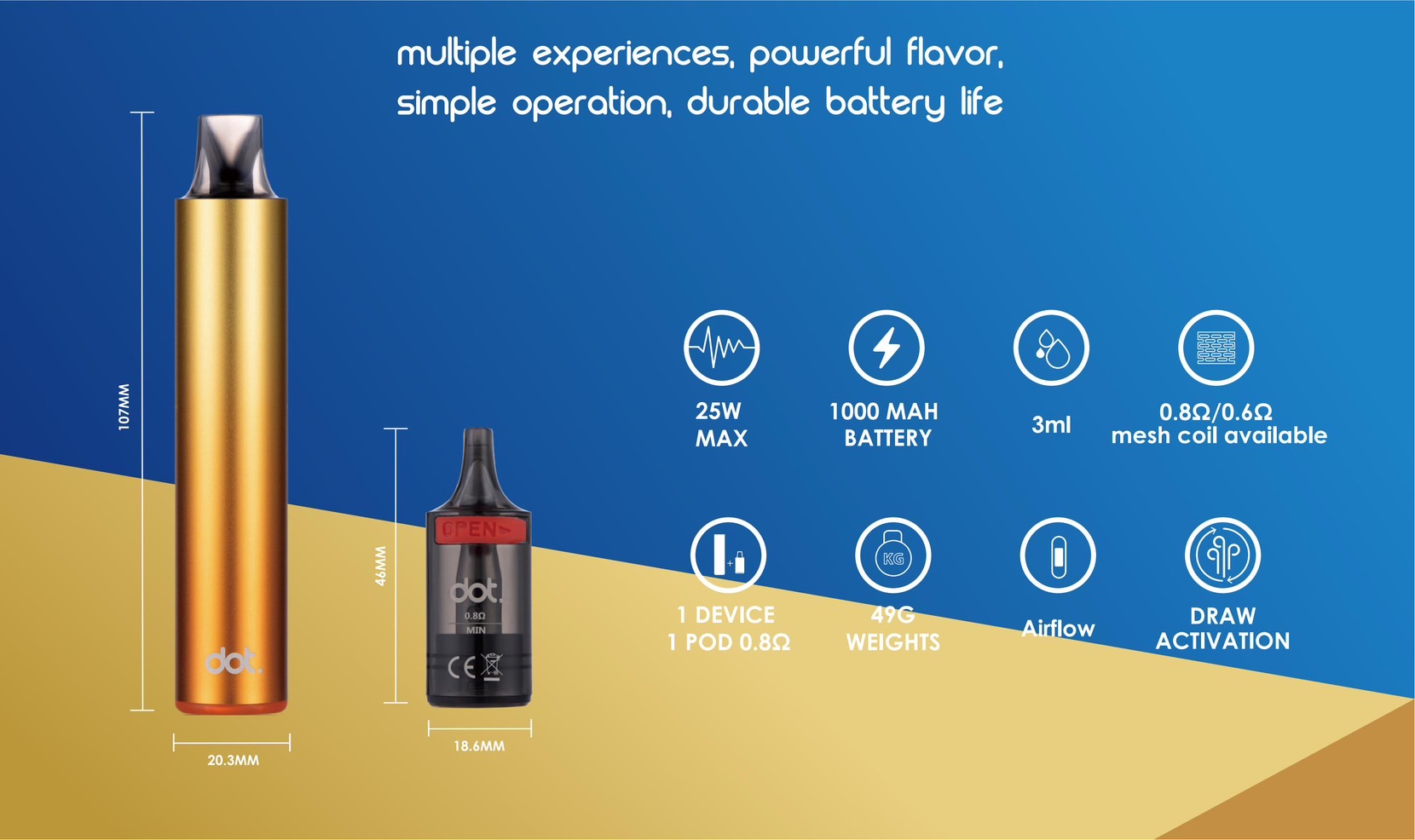 Switch 替換煙彈採用尖端技術和優質結構,可提供流暢、美味的體驗,甚至可以滿足最先進的電子煙玩家的需求。 無論您是初學者還是經驗豐富的專業人士,這些 Pod 都能為您的 Switch by dot 提供無與倫比的便利性和相容性。裝置.