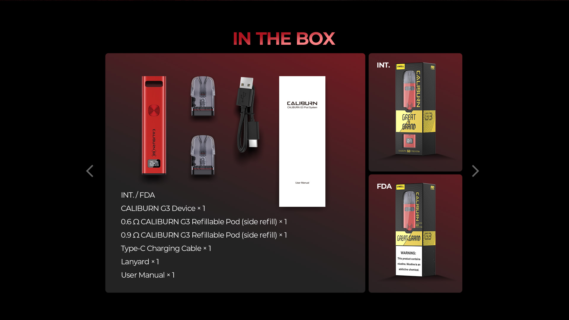 • 1 x 0.6Ω Caliburn G3 煙彈