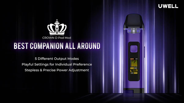 Uwell Crown D 是當今少數兼具操控自由與硬體美學的中高階 Pod Mod 系統。五種輸出模式 + 旋鈕控瓦讓使用者能真正「調出喜歡的味道」。不只是性能怪獸,更是設計細節到位的時尚精品。