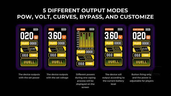 - 五種輸出模式:POW / VOLT / CURVES / BYPASS / CUSTOM,個性化體驗全面解鎖。