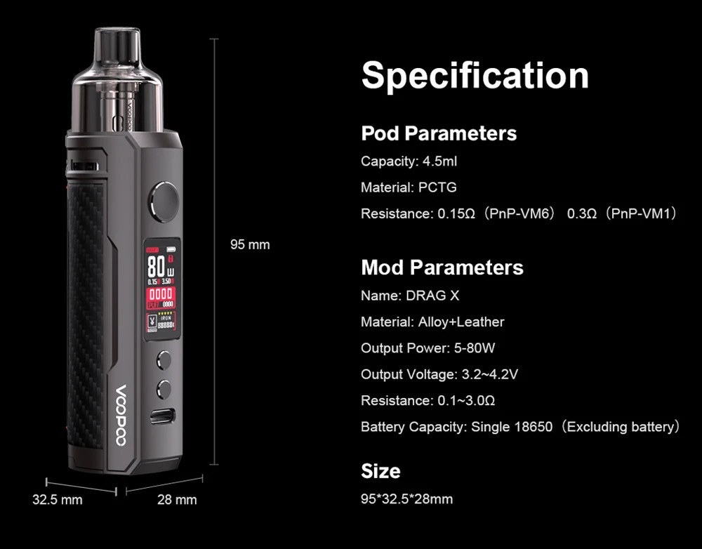 憑藉最大 80W 的功率輸出,DRAG X 使您能夠製作更大的美味雲。可調功率範圍 5-80W 可滿足您的需求。