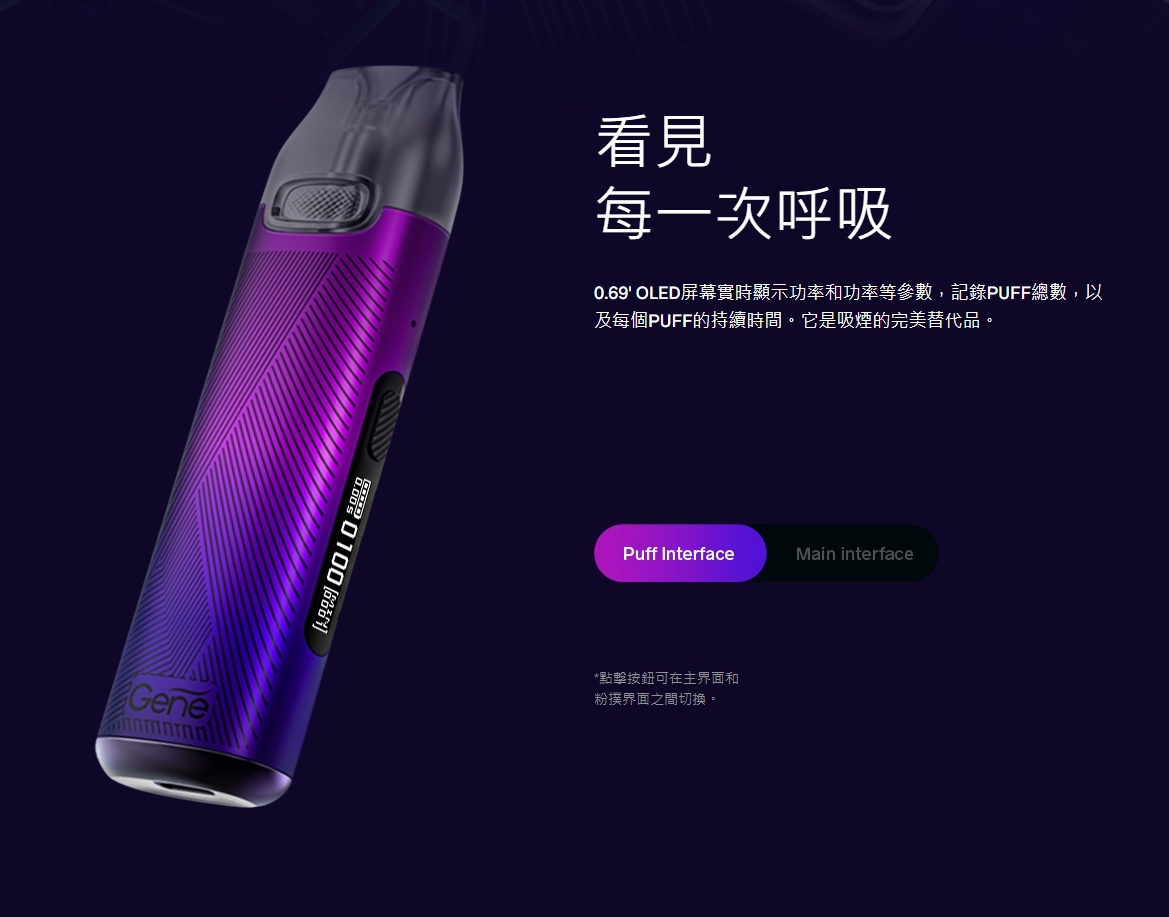 0.69′ OLED屏幕實時顯示功率和功率等參數,記錄PUFF總數,以及每個PUFF的持續時間。它是吸煙的完美替代品。