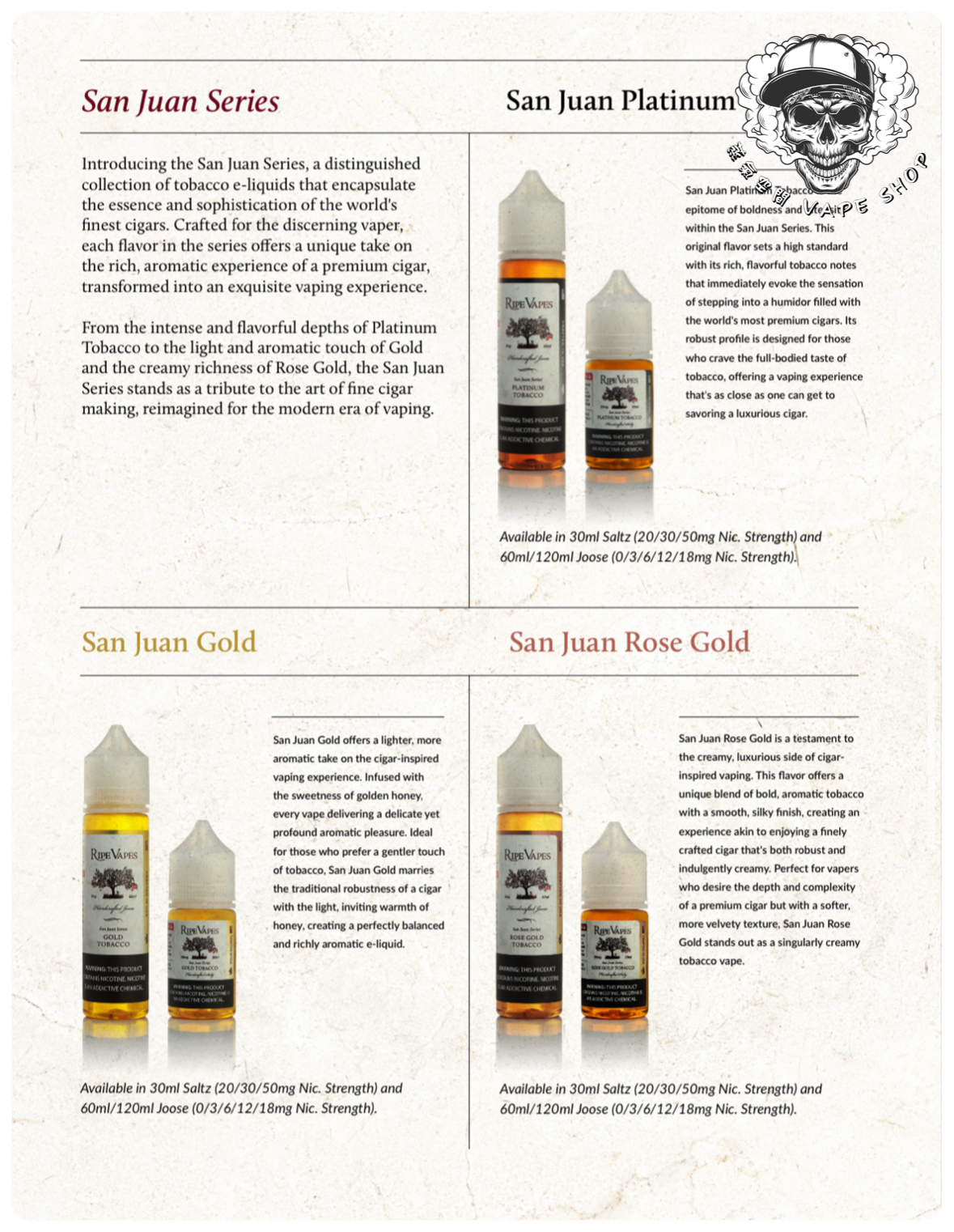 | RIPEVAPES生命之樹 | VCT Original經典煙草30ml/30MG, VCT CAFE咖啡煙草30ml/30MG, SAN JUAN GOLD金版聖胡安雪茄30ml/30MG, APPLE FREEZ冷凍蘋果30ml/30MG, MALON FREEZ冷凍哈密瓜30ml/30MG, WATERMELON FREEZ冷凍西瓜30ml/30MG, STRAWBERRY FREEZ冷凍草莓30ml/30MG, 聖胡安蜂蜜煙草30ml/30MG, 聖胡安奶油煙草30ml/30MG, 聖胡安金斯頓煙草30ml/30MG |